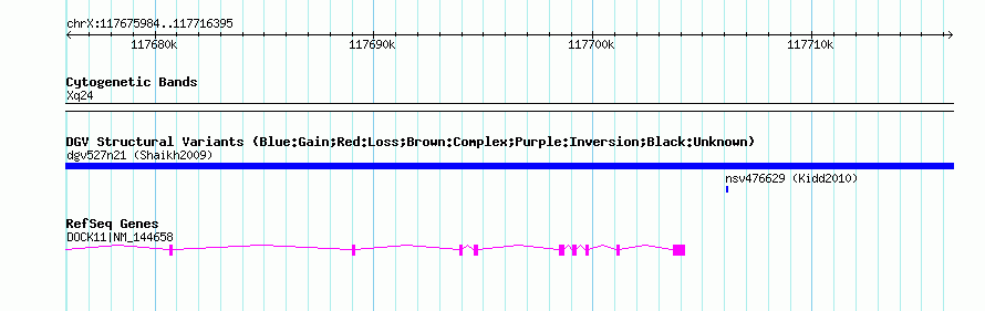 | | Variant Type | CNV gain | | Copy Number | | | Allele State | | | Allele Origin | | | Probe Count | | | Validation Flag | | | Merged Status | S | | Merged Variants | nsv517257 | | Supporting Variants | | | Samples | | | Known Genes | DOCK11 | | Method | SNP array | | Analysis | Sample-level CNVs | | Platform | GPL6434 | | Comments | | | Reference | Shaikh_et_al_2009 | | Pubmed ID | 19592680 | | Accession Number(s) | nssv705250