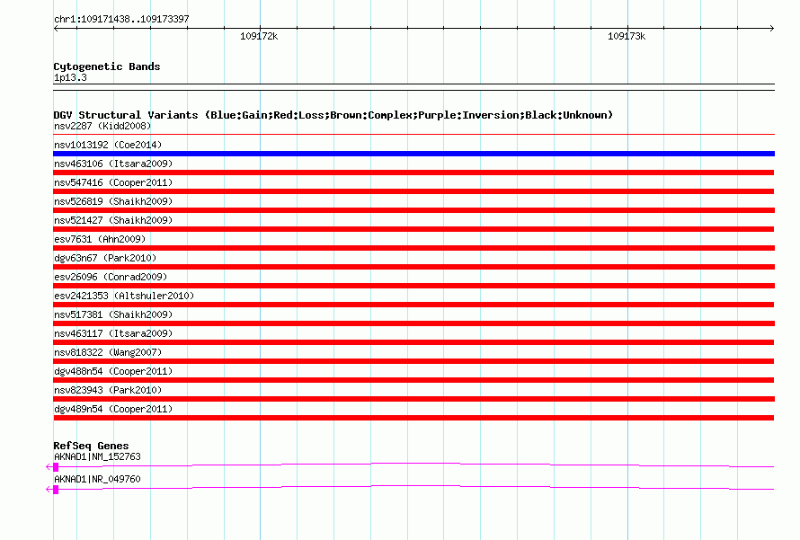 Variant DetailsVariant: nssv706005| Internal ID | 15095971 | | Landmark | | | Location Information | | | Cytoband | 1p13.3 | | Allele length | | Assembly | Allele length | | hg38 | 1960 | | hg19 | 1960 | | hg18 | 1960 | | hg17 | 1960 |