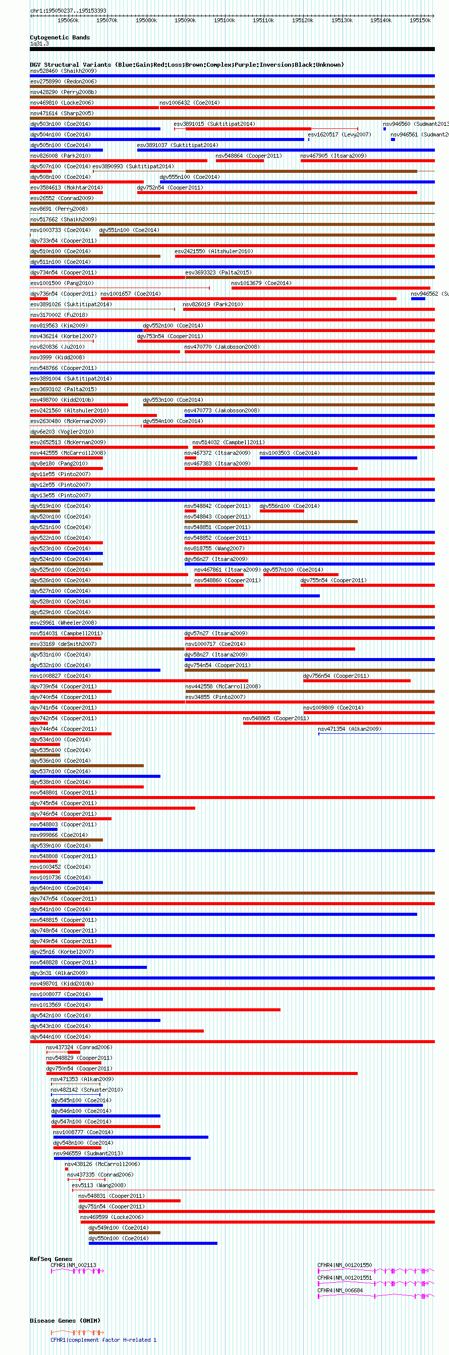 Variant DetailsVariant: nsv1000067| Internal ID | 19089284 | | Landmark | | | Location Information | | | Cytoband | 1q31.3 | | Allele length | | Assembly | Allele length | | hg38 | 103157 | | hg19 | 103157 | | hg18 | 103157 |