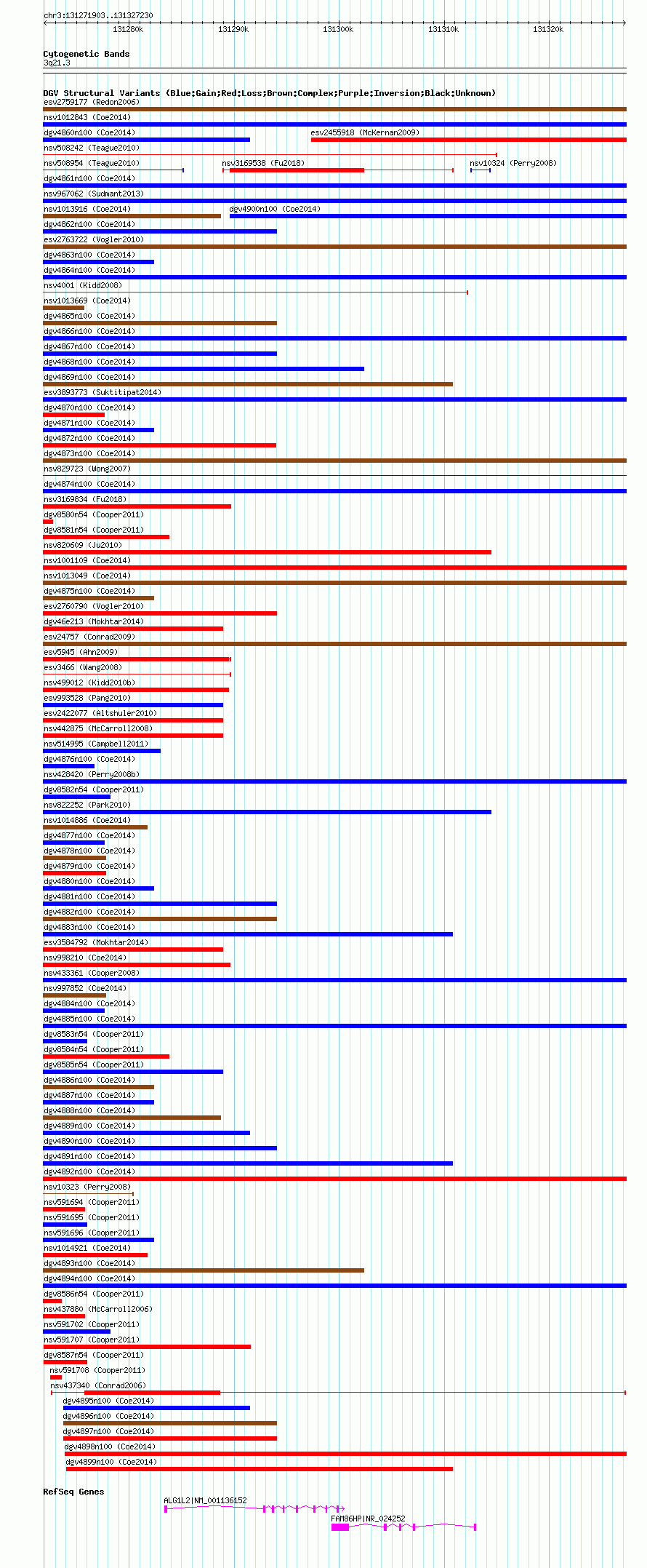Variant DetailsVariant: nsv1000223| Internal ID | 19089440 | | Landmark | | | Location Information | | | Cytoband | 3q21.3 | | Allele length | | Assembly | Allele length | | hg38 | 55328 | | hg19 | 55328 | | hg18 | 55328 |