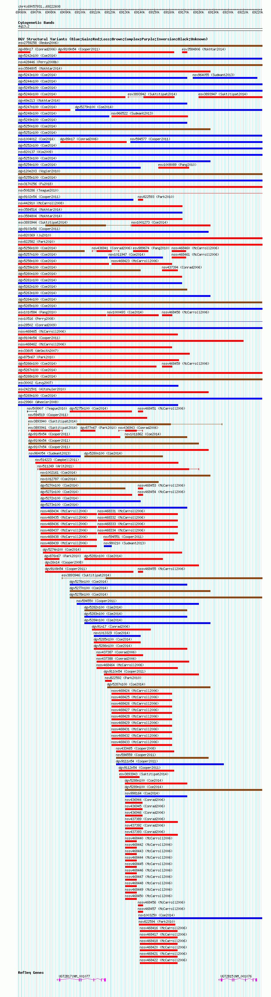 Variant DetailsVariant: nsv1000278| Internal ID | 19089495 | | Landmark | | | Location Information | | | Cytoband | 4q13.2 | | Allele length | | Assembly | Allele length | | hg38 | 164678 | | hg19 | 164678 | | hg18 | 164678 |