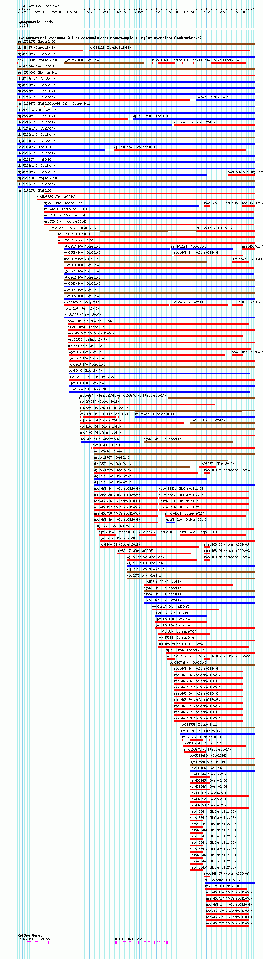 Variant DetailsVariant: nsv1000892| Internal ID | 19090109 | | Landmark | | | Location Information | | | Cytoband | 4q13.2 | | Allele length | | Assembly | Allele length | | hg38 | 141368 | | hg19 | 141368 | | hg18 | 141368 |