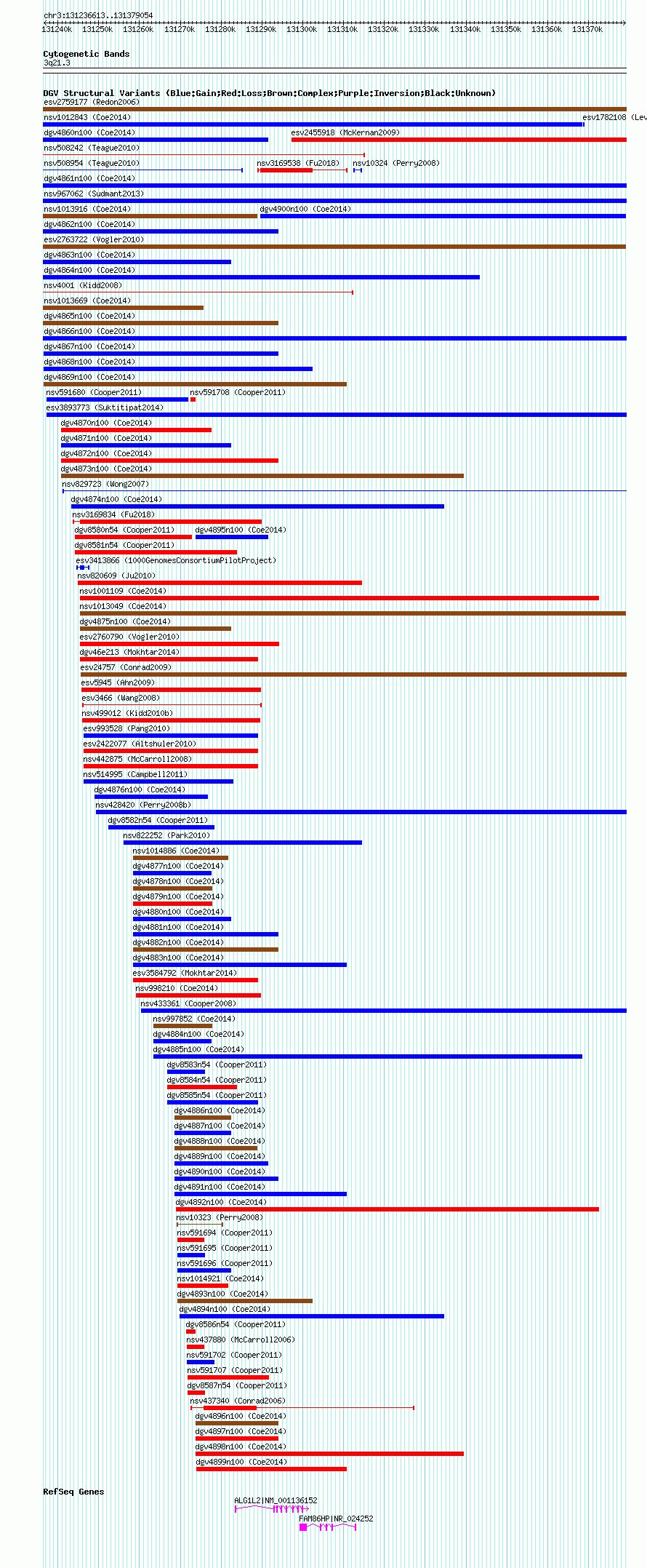Variant DetailsVariant: nsv1000981| Internal ID | 19090198 | | Landmark | | | Location Information | | | Cytoband | 3q21.3 | | Allele length | | Assembly | Allele length | | hg38 | 142442 | | hg19 | 142442 | | hg18 | 142442 |