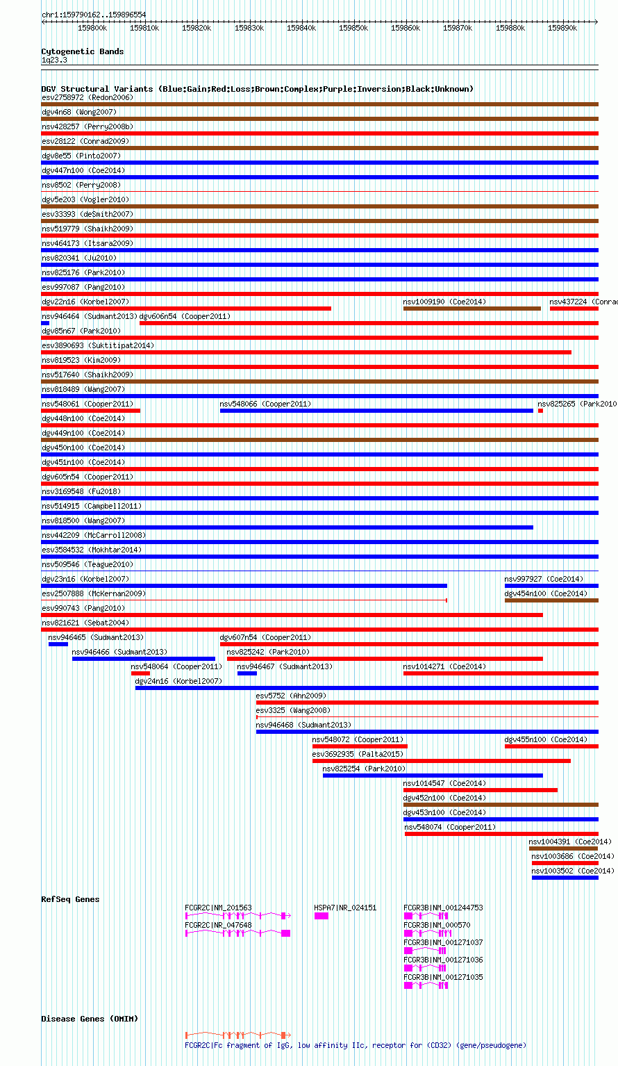 | | Variant Type | CNV loss | | Copy Number | | | Allele State | | | Allele Origin | | | Probe Count | | | Validation Flag | | | Merged Status | M | | Merged Variants | dgv448n100 | | Supporting Variants | nssv3486118 | | Samples | | | Known Genes | FCGR2C, FCGR3B, HSPA7 | | Method | SNP array | | Analysis | Affymetrix SNP array copy number analysis | | Platform | Affymetrix SNP Array 6.0 | | Comments | | | Reference | Coe_et_al_2014 | | Pubmed ID | 25217958 | | Accession Number(s) | nsv1001036