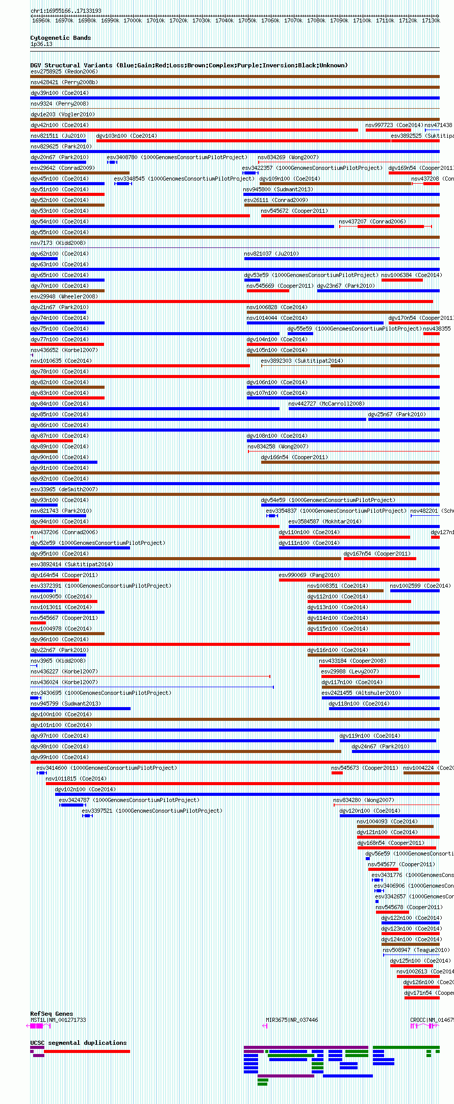 Variant DetailsVariant: nsv1001823| Internal ID | 18744354 | | Landmark | | | Location Information | | | Cytoband | 1p36.13 | | Allele length | | Assembly | Allele length | | hg18 | 178028 |