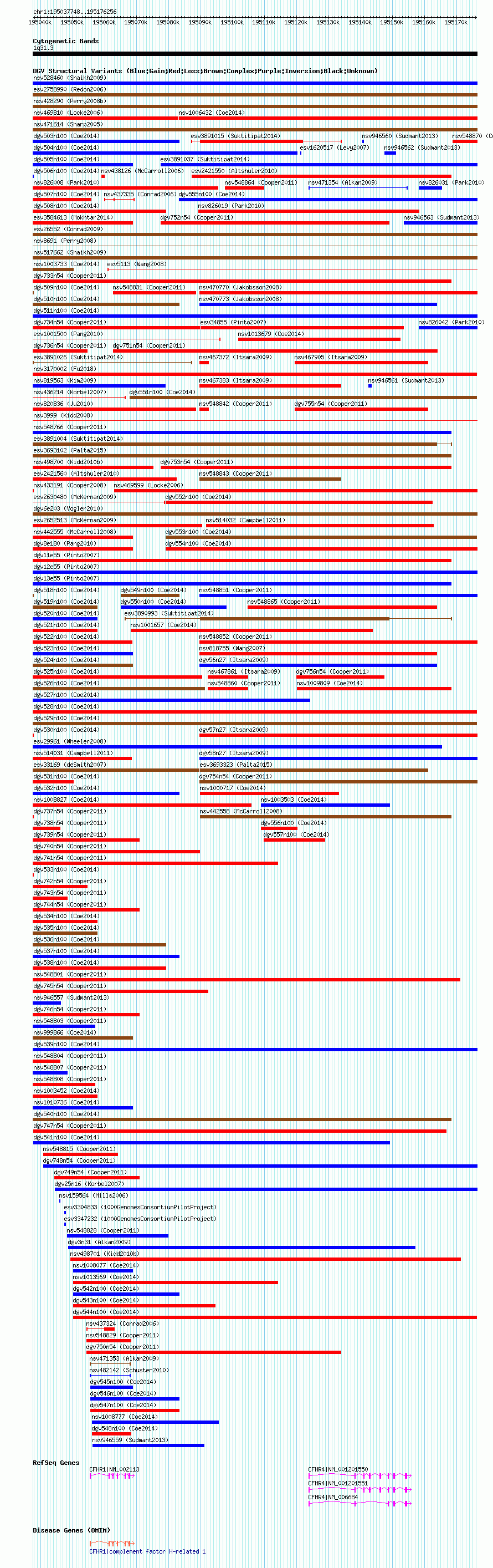 Variant DetailsVariant: nsv1002063| Internal ID | 19091280 | | Landmark | | | Location Information | | | Cytoband | 1q31.3 | | Allele length | | Assembly | Allele length | | hg38 | 138509 | | hg19 | 138509 | | hg18 | 138509 |