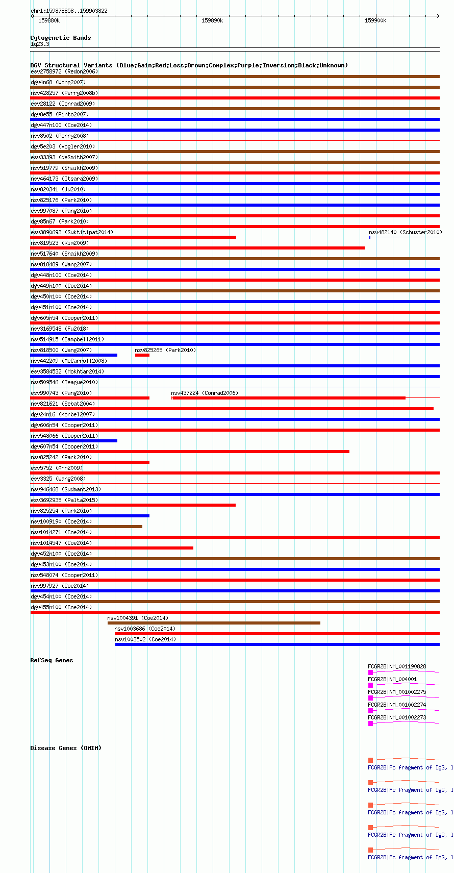 | | Variant Type | CNV loss | | Copy Number | | | Allele State | | | Allele Origin | | | Probe Count | | | Validation Flag | | | Merged Status | M | | Merged Variants | dgv455n100 | | Supporting Variants | nssv3483429, nssv3704801 | | Samples | | | Known Genes | FCGR2B | | Method | SNP array | | Analysis | Affymetrix SNP array copy number analysis | | Platform | Affymetrix SNP Array 6.0 | | Comments | | | Reference | Coe_et_al_2014 | | Pubmed ID | 25217958 | | Accession Number(s) | nsv1002184