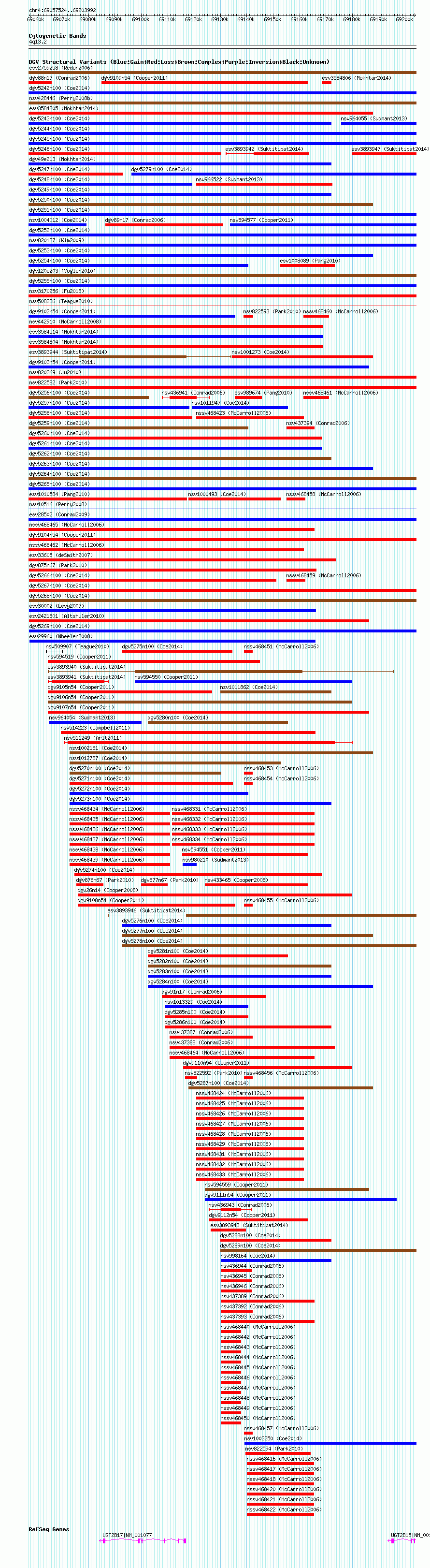 Variant DetailsVariant: nsv1002317 | Internal ID | 19091534 | | Landmark | | | Location Information | | | Cytoband | 4q13.2 | | Allele length | | Assembly | Allele length | | hg38 | 146469 | | hg19 | 146469 | | hg18 | 146469 |