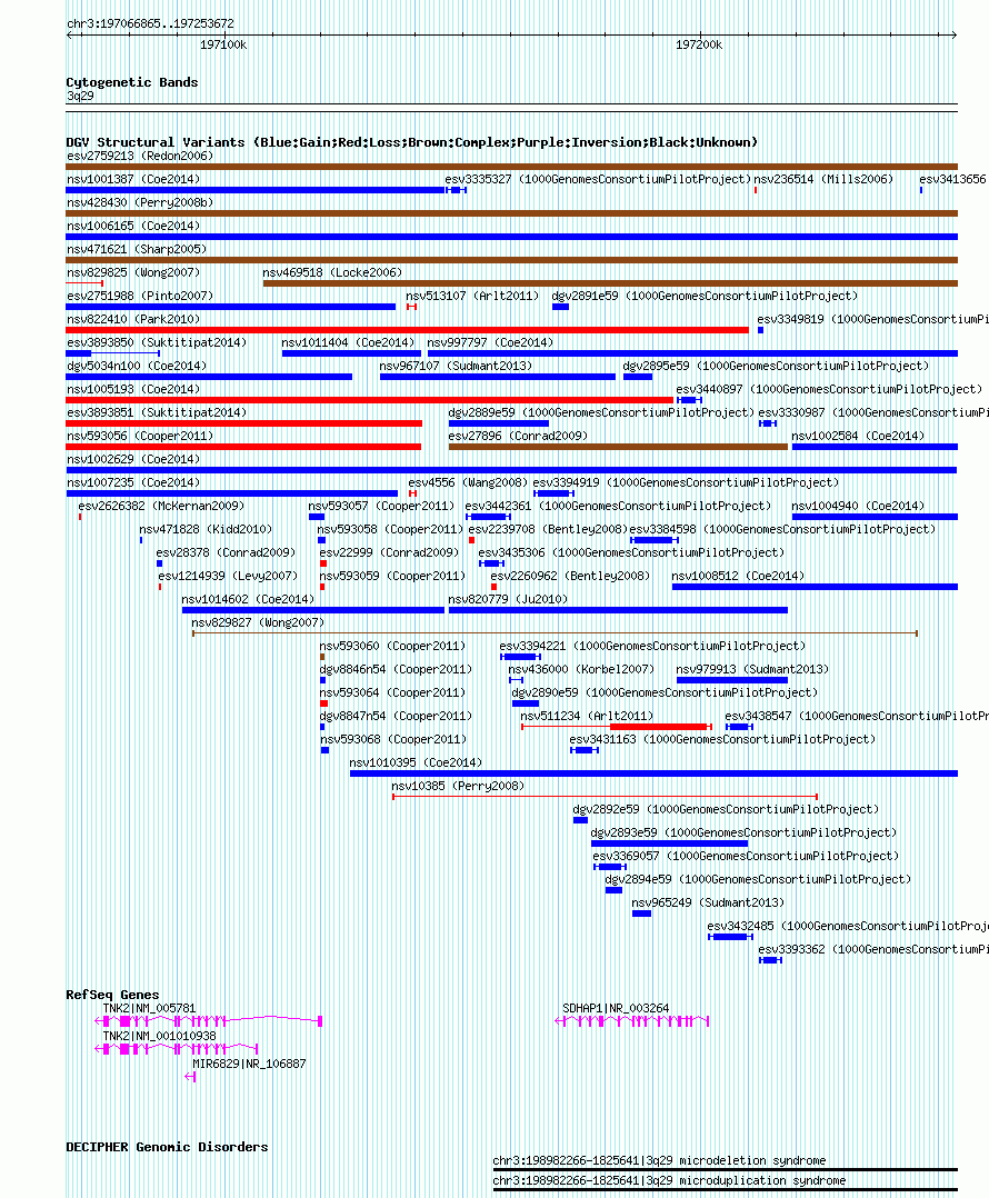 Variant DetailsVariant: nsv1002629| Internal ID | 19091846 | | Landmark | | | Location Information | | | Cytoband | 3q29 | | Allele length | | Assembly | Allele length | | hg38 | 186808 | | hg19 | 186808 | | hg18 | 186808 |