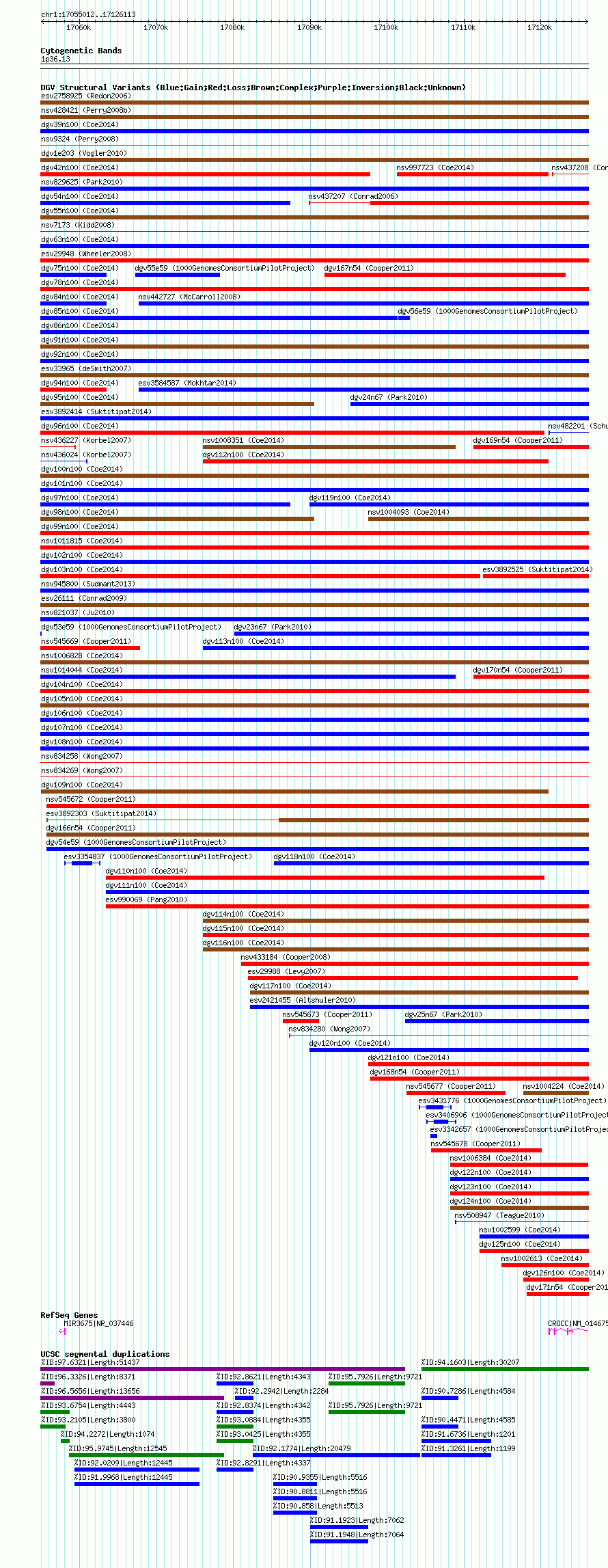Variant DetailsVariant: nsv1002929| Internal ID | 18745461 | | Landmark | | | Location Information | | | Cytoband | 1p36.13 | | Allele length | | Assembly | Allele length | | hg38 | 71102 | | hg19 | 71102 | | hg18 | 71102 |