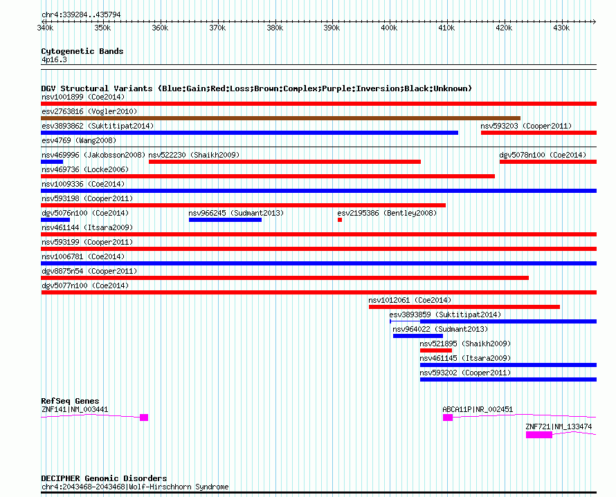Variant DetailsVariant: nsv1003360| Internal ID | 19092579 | | Landmark | | | Location Information | | | Cytoband | 4p16.3 | | Allele length | | Assembly | Allele length | | hg38 | 96511 | | hg19 | 96511 | | hg18 | 96511 |