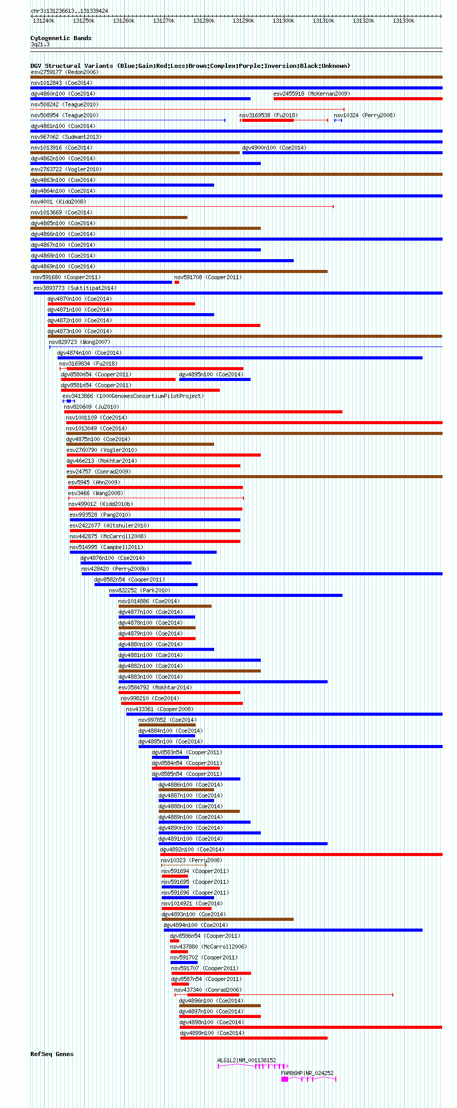 | | Variant Type | CNV gain | | Copy Number | | | Allele State | | | Allele Origin | | | Probe Count | | | Validation Flag | | | Merged Status | M | | Merged Variants | dgv4864n100 | | Supporting Variants | nssv3603634 | | Samples | | | Known Genes | ALG1L2, FAM86HP | | Method | SNP array | | Analysis | Affymetrix SNP array copy number analysis | | Platform | Affymetrix SNP Array 6.0 | | Comments | | | Reference | Coe_et_al_2014 | | Pubmed ID | 25217958 | | Accession Number(s) | nsv1003793