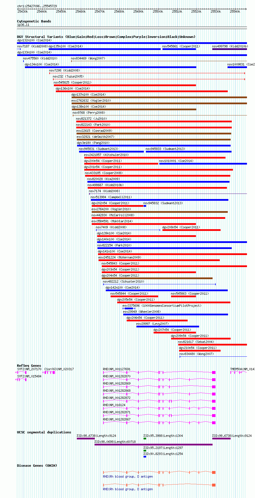 | Known Genes | C1orf63, RHD, SYF2, TMEM50A |