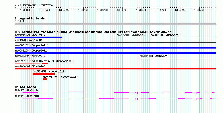 Variant DetailsVariant: nsv1004604| Internal ID | 18747135 | | Landmark | | | Location Information | | | Cytoband | 2q21.2 | | Allele length | | Assembly | Allele length | | hg38 | 103679 | | hg19 | 103679 | | hg18 | 103679 |