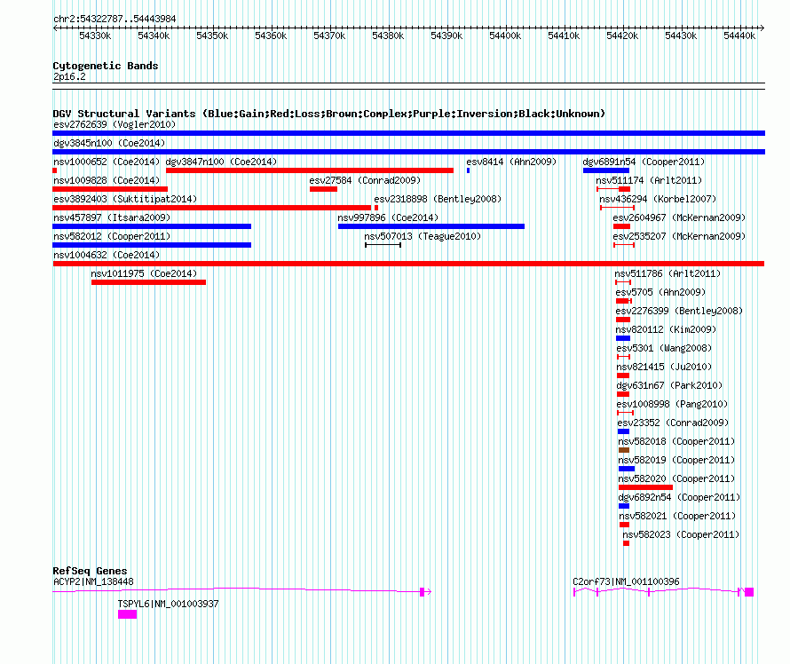 Variant DetailsVariant: nsv1004632| Internal ID | 19093849 | | Landmark | | | Location Information | | | Cytoband | 2p16.2 | | Allele length | | Assembly | Allele length | | hg38 | 121198 | | hg19 | 121198 | | hg18 | 121198 |