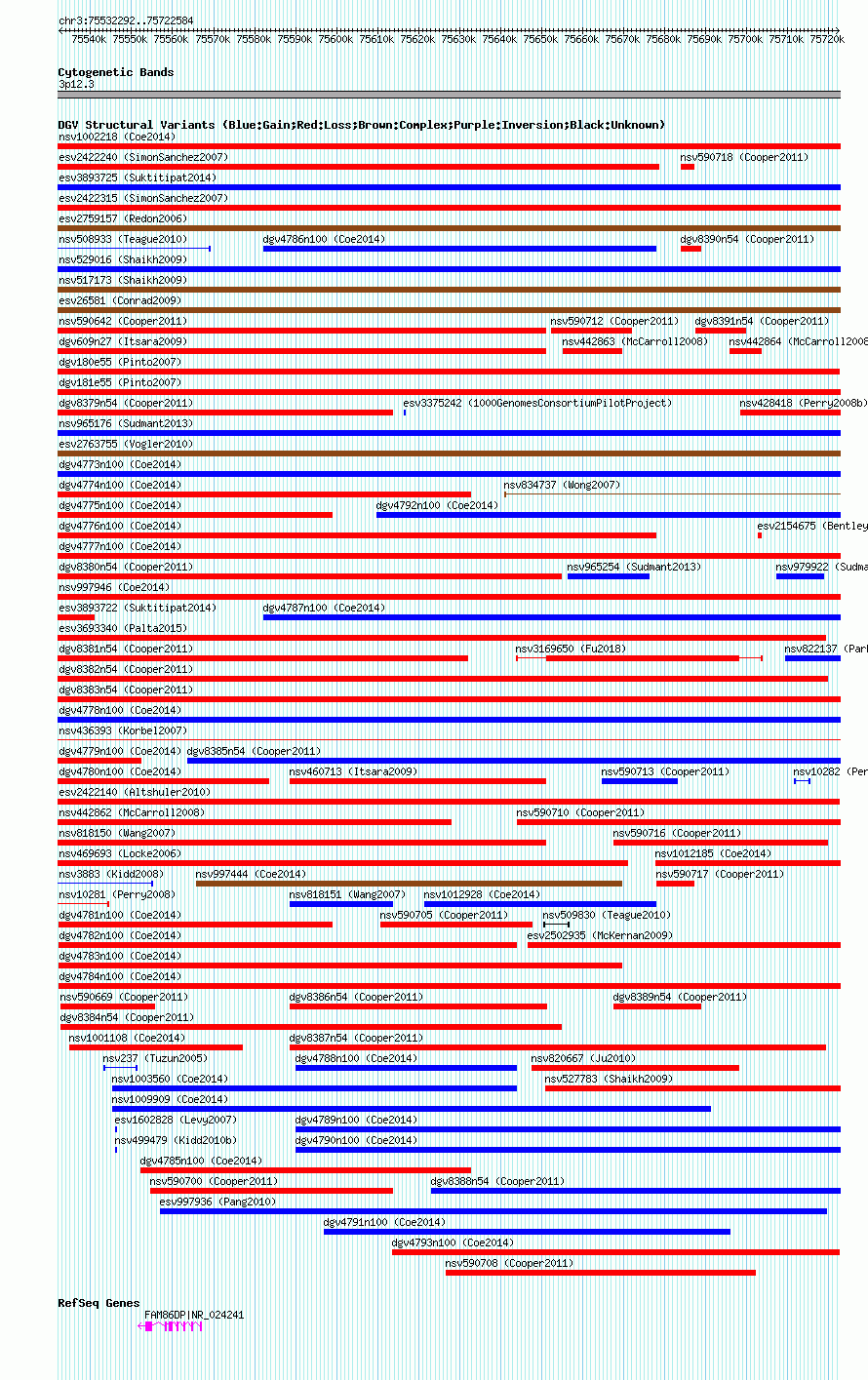 Variant DetailsVariant: nsv1004798| Internal ID | 19094015 | | Landmark | | | Location Information | | | Cytoband | 3p12.3 | | Allele length | | Assembly | Allele length | | hg38 | 190293 | | hg19 | 190293 | | hg18 | 190293 |