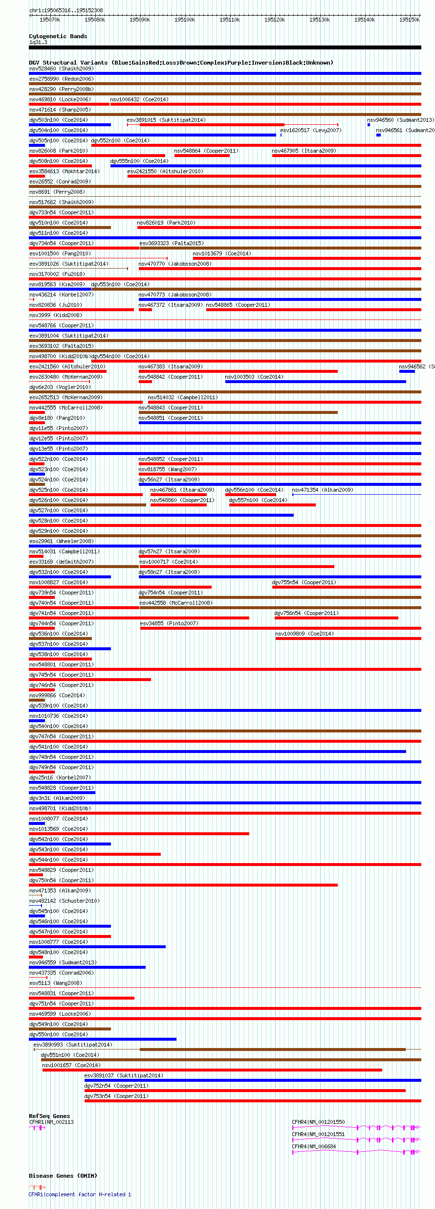 Variant DetailsVariant: nsv1004826| Internal ID | 19094043 | | Landmark | | | Location Information | | | Cytoband | 1q31.3 | | Allele length | | Assembly | Allele length | | hg38 | 86993 | | hg19 | 86993 | | hg18 | 86993 |