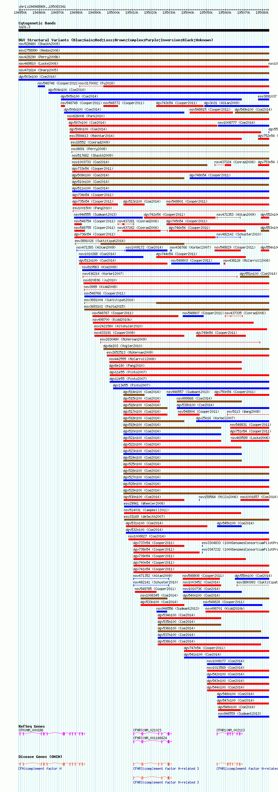 | | Variant Type | CNV gain | | Copy Number | | | Allele State | | | Allele Origin | | | Probe Count | | | Validation Flag | | | Merged Status | M | | Merged Variants | dgv503n100 | | Supporting Variants | nssv3489329 | | Samples | | | Known Genes | CFH, CFHR1, CFHR3 | | Method | SNP array | | Analysis | Affymetrix SNP array copy number analysis | | Platform | Affymetrix SNP Array 6.0 | | Comments | | | Reference | Coe_et_al_2014 | | Pubmed ID | 25217958 | | Accession Number(s) | nsv1004934