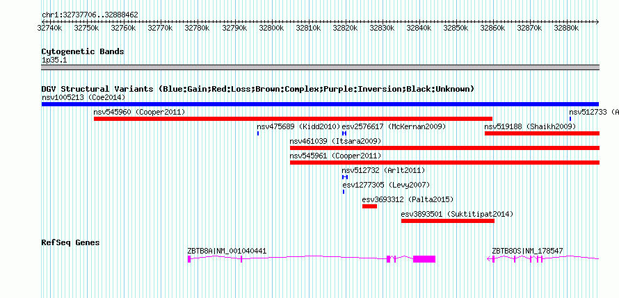 | | Variant Type | CNV gain | | Copy Number | | | Allele State | | | Allele Origin | | | Probe Count | | | Validation Flag | | | Merged Status | M | | Merged Variants | | | Supporting Variants | nssv3472615 | | Samples | | | Known Genes | ZBTB8A, ZBTB8OS | | Method | SNP array | | Analysis | Affymetrix SNP array copy number analysis | | Platform | Affymetrix SNP Array 6.0 | | Comments | | | Reference | Coe_et_al_2014 | | Pubmed ID | 25217958 | | Accession Number(s) | nsv1005213