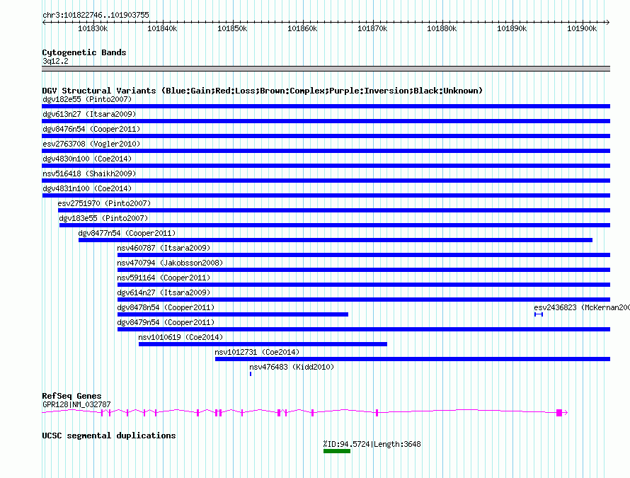 Variant DetailsVariant: nsv1005369| Internal ID | 18747900 | | Landmark | | | Location Information | | | Cytoband | 3q12.2 | | Allele length | | Assembly | Allele length | | hg38 | 81010 | | hg19 | 81010 | | hg18 | 81010 |