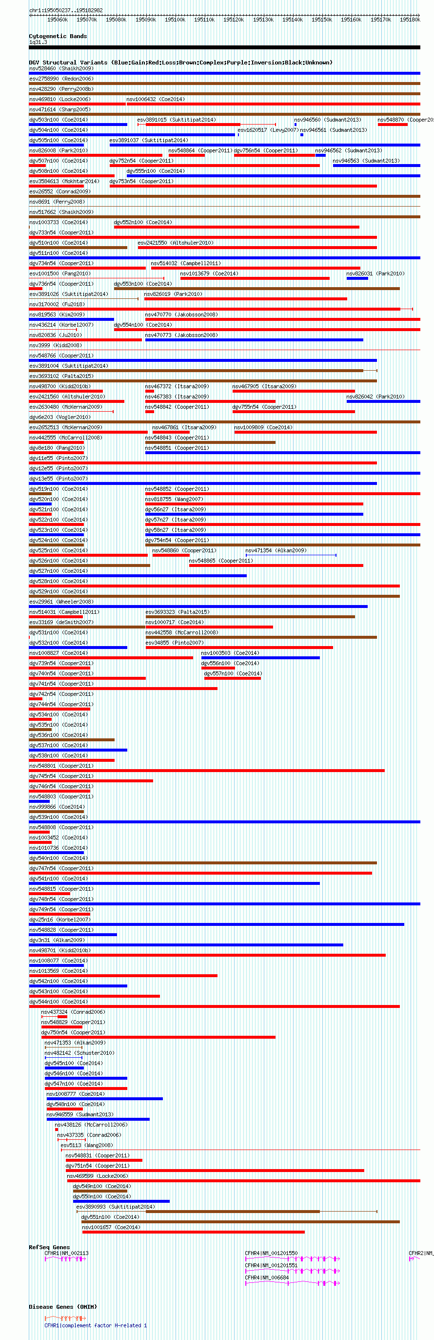 Variant DetailsVariant: nsv1005490| Internal ID | 19094707 | | Landmark | | | Location Information | | | Cytoband | 1q31.3 | | Allele length | | Assembly | Allele length | | hg38 | 132746 | | hg19 | 132746 | | hg18 | 132746 |