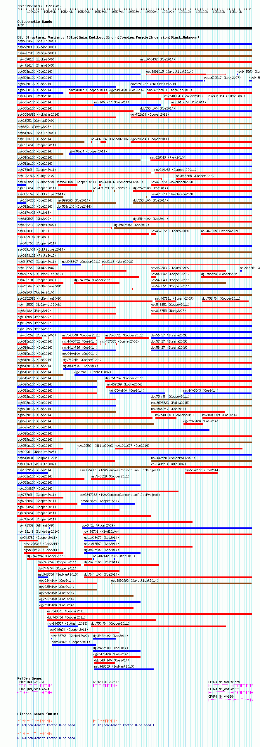 | | Variant Type | CNV loss | | Copy Number | | | Allele State | | | Allele Origin | | | Probe Count | | | Validation Flag | | | Merged Status | M | | Merged Variants | dgv528n100 | | Supporting Variants | nssv3502088 | | Samples | | | Known Genes | CFHR1, CFHR3, CFHR4 | | Method | SNP array | | Analysis | Affymetrix SNP array copy number analysis | | Platform | Affymetrix SNP Array 6.0 | | Comments | | | Reference | Coe_et_al_2014 | | Pubmed ID | 25217958 | | Accession Number(s) | nsv1006085
