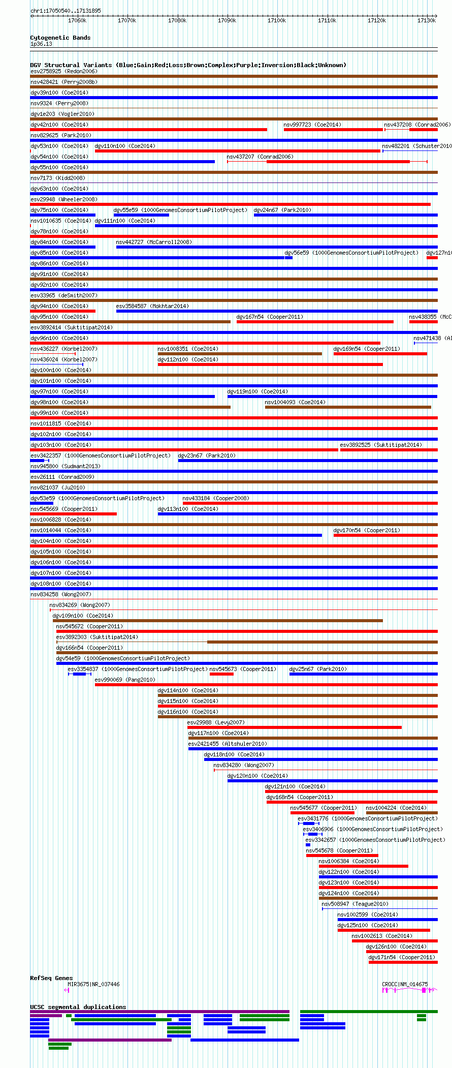 Variant DetailsVariant: nsv1006120| Internal ID | 18748651 | | Landmark | | | Location Information | | | Cytoband | 1p36.13 | | Allele length | | Assembly | Allele length | | hg38 | 81356 | | hg19 | 81356 | | hg18 | 81356 |