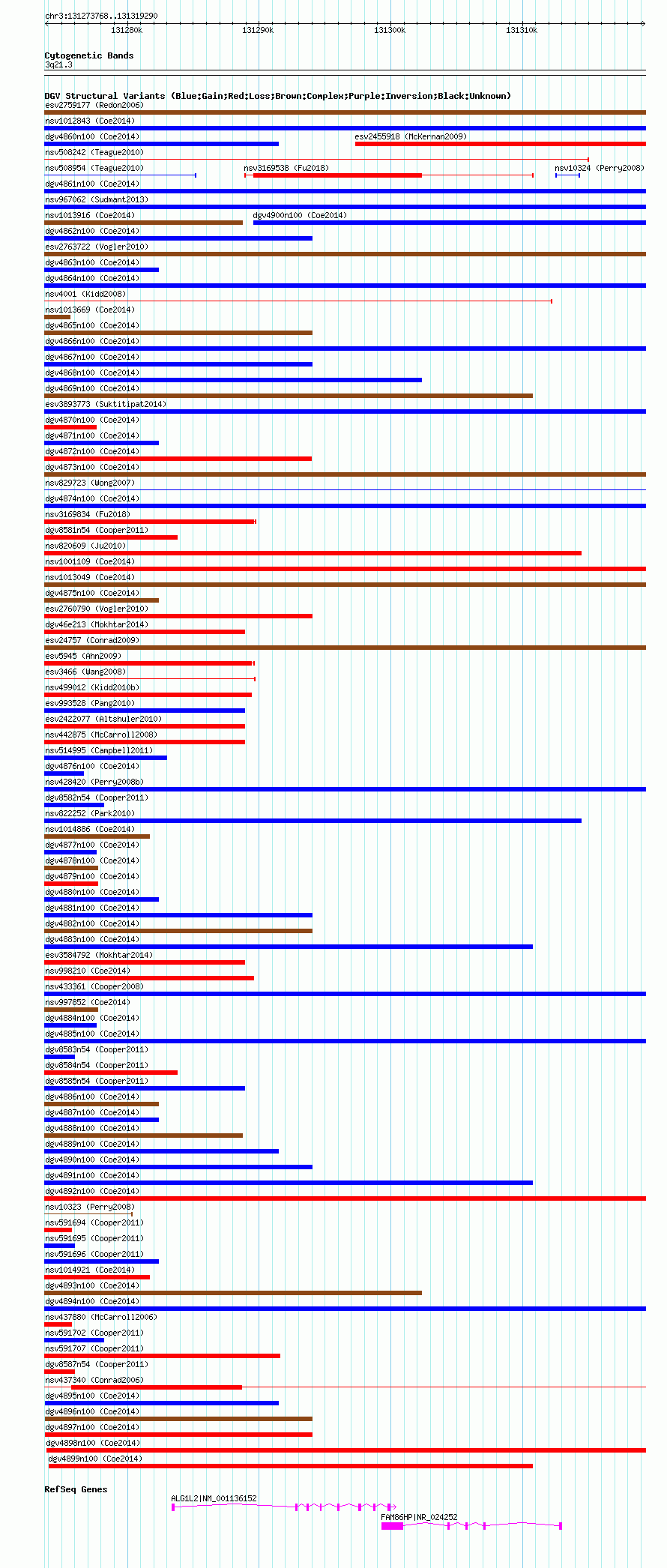Variant DetailsVariant: nsv1006186| Internal ID | 19095404 | | Landmark | | | Location Information | | | Cytoband | 3q21.3 | | Allele length | | Assembly | Allele length | | hg38 | 45523 | | hg19 | 45523 | | hg18 | 45523 |