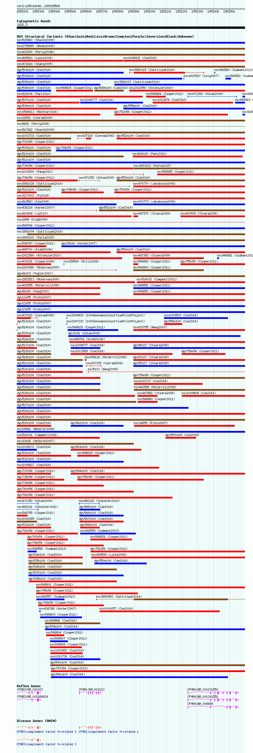 | | Variant Type | CNV loss | | Copy Number | | | Allele State | | | Allele Origin | | | Probe Count | | | Validation Flag | | | Merged Status | M | | Merged Variants | dgv528n100 | | Supporting Variants | nssv3486846 | | Samples | | | Known Genes | CFHR1, CFHR3, CFHR4 | | Method | SNP array | | Analysis | Affymetrix SNP array copy number analysis | | Platform | Affymetrix SNP Array 6.0 | | Comments | | | Reference | Coe_et_al_2014 | | Pubmed ID | 25217958 | | Accession Number(s) | nsv1006349