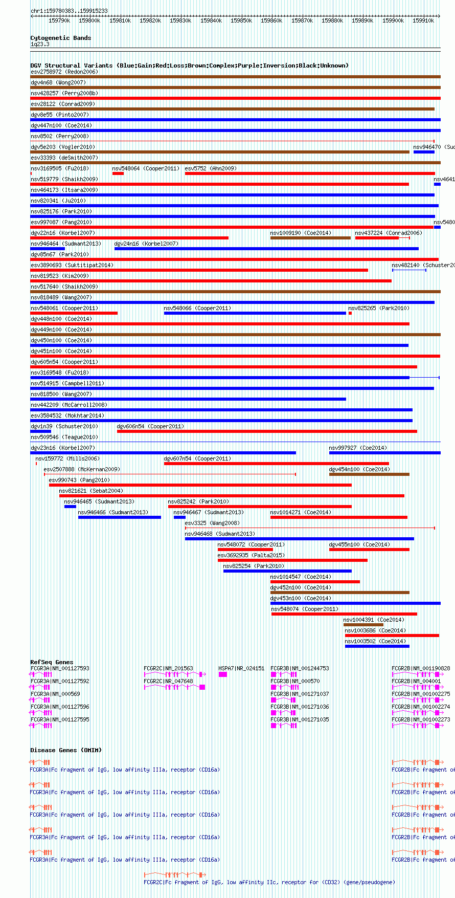 | | Variant Type | CNV loss | | Copy Number | | | Allele State | | | Allele Origin | | | Probe Count | | | Validation Flag | | | Merged Status | M | | Merged Variants | dgv451n100 | | Supporting Variants | nssv3486923 | | Samples | | | Known Genes | FCGR2B, FCGR2C, FCGR3A, FCGR3B, HSPA7 | | Method | SNP array | | Analysis | Affymetrix SNP array copy number analysis | | Platform | Affymetrix SNP Array 6.0 | | Comments | | | Reference | Coe_et_al_2014 | | Pubmed ID | 25217958 | | Accession Number(s) | nsv1006417