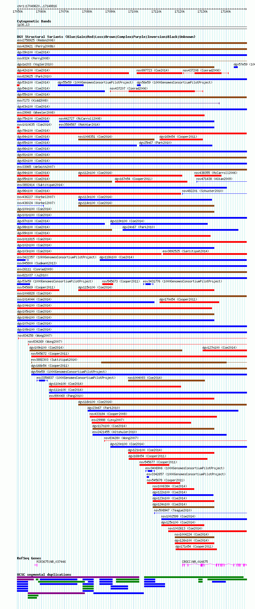 Variant DetailsVariant: nsv1006828| Internal ID | 18749359 | | Landmark | | | Location Information | | | Cytoband | 1p36.13 | | Allele length | | Assembly | Allele length | | hg38 | 99197 | | hg19 | 99197 | | hg18 | 99197 |