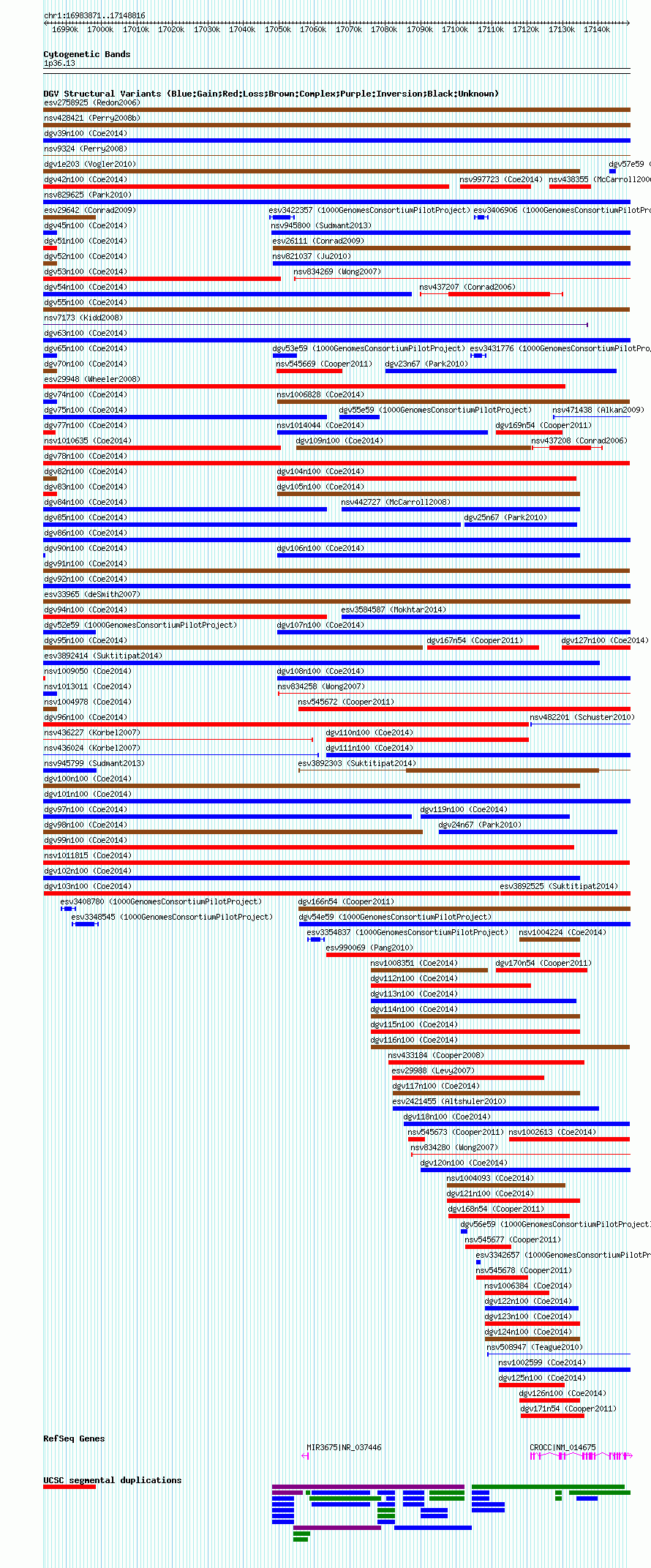 Variant DetailsVariant: nsv1006989| Internal ID | 18749520 | | Landmark | | | Location Information | | | Cytoband | 1p36.13 | | Allele length | | Assembly | Allele length | | hg18 | 164946 |