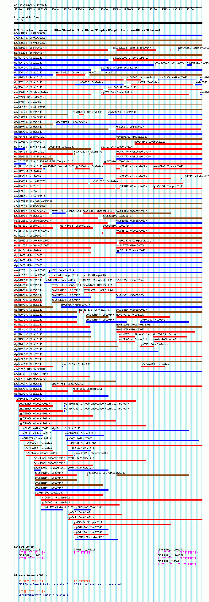 Variant DetailsVariant: nsv1007147| Internal ID | 19096365 | | Landmark | | | Location Information | | | Cytoband | 1q31.3 | | Allele length | | Assembly | Allele length | | hg38 | 152987 | | hg19 | 152987 | | hg18 | 152987 |