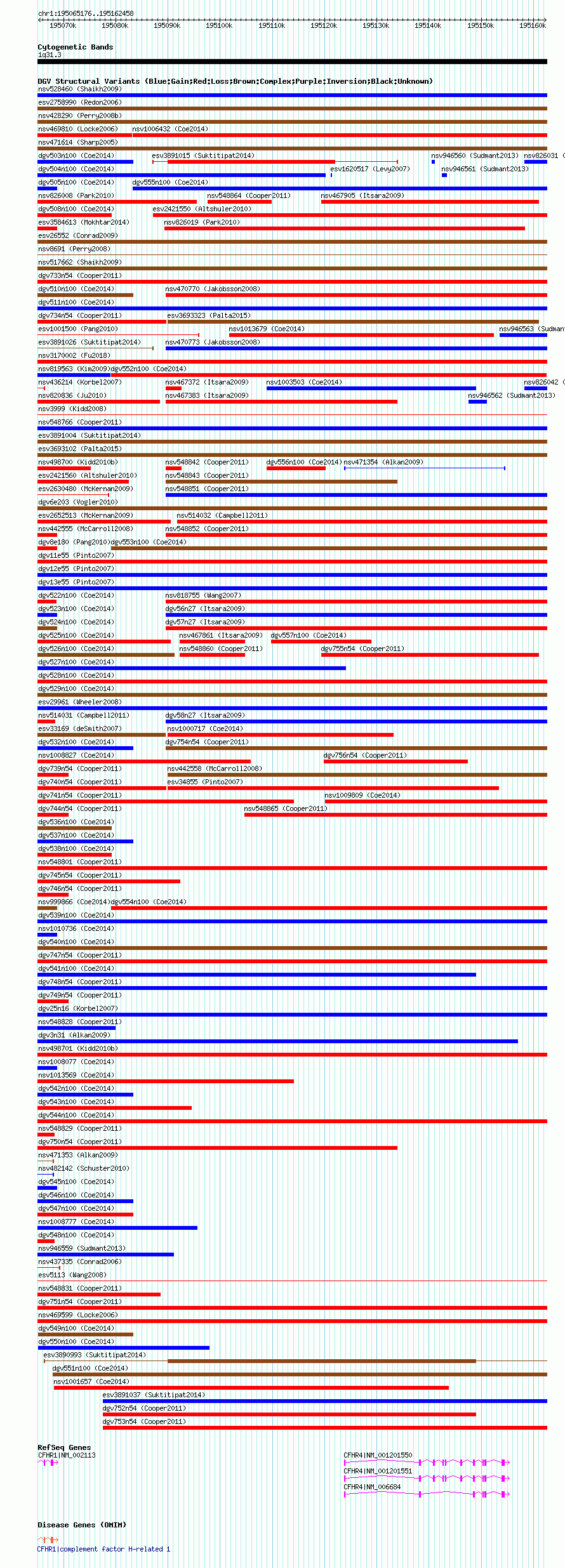 Variant DetailsVariant: nsv1007360| Internal ID | 19096579 | | Landmark | | | Location Information | | | Cytoband | 1q31.3 | | Allele length | | Assembly | Allele length | | hg38 | 97283 | | hg19 | 97283 | | hg18 | 97283 |