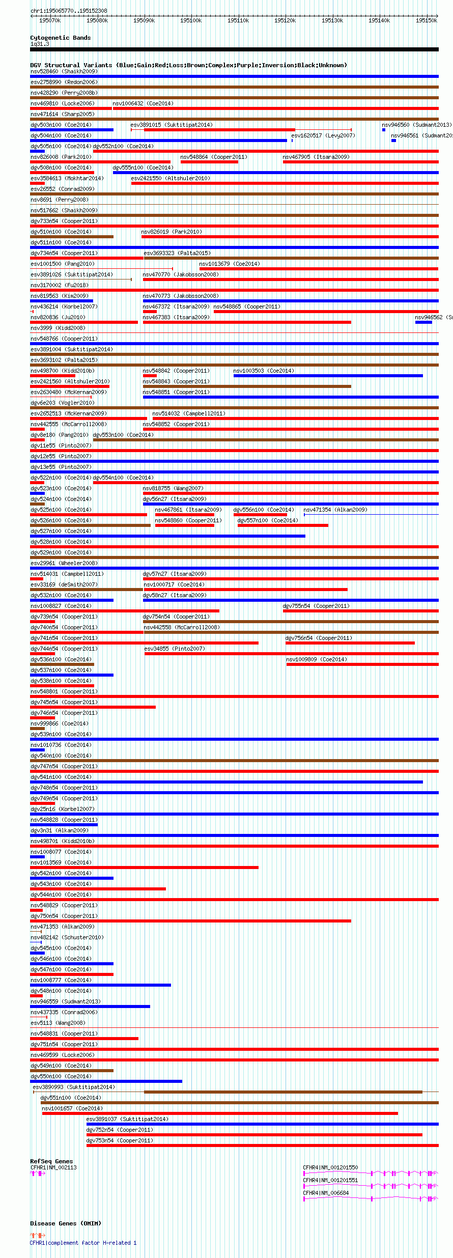 Variant DetailsVariant: nsv1007361| Internal ID | 19096580 | | Landmark | | | Location Information | | | Cytoband | 1q31.3 | | Allele length | | Assembly | Allele length | | hg38 | 86539 | | hg19 | 86539 | | hg18 | 86539 |