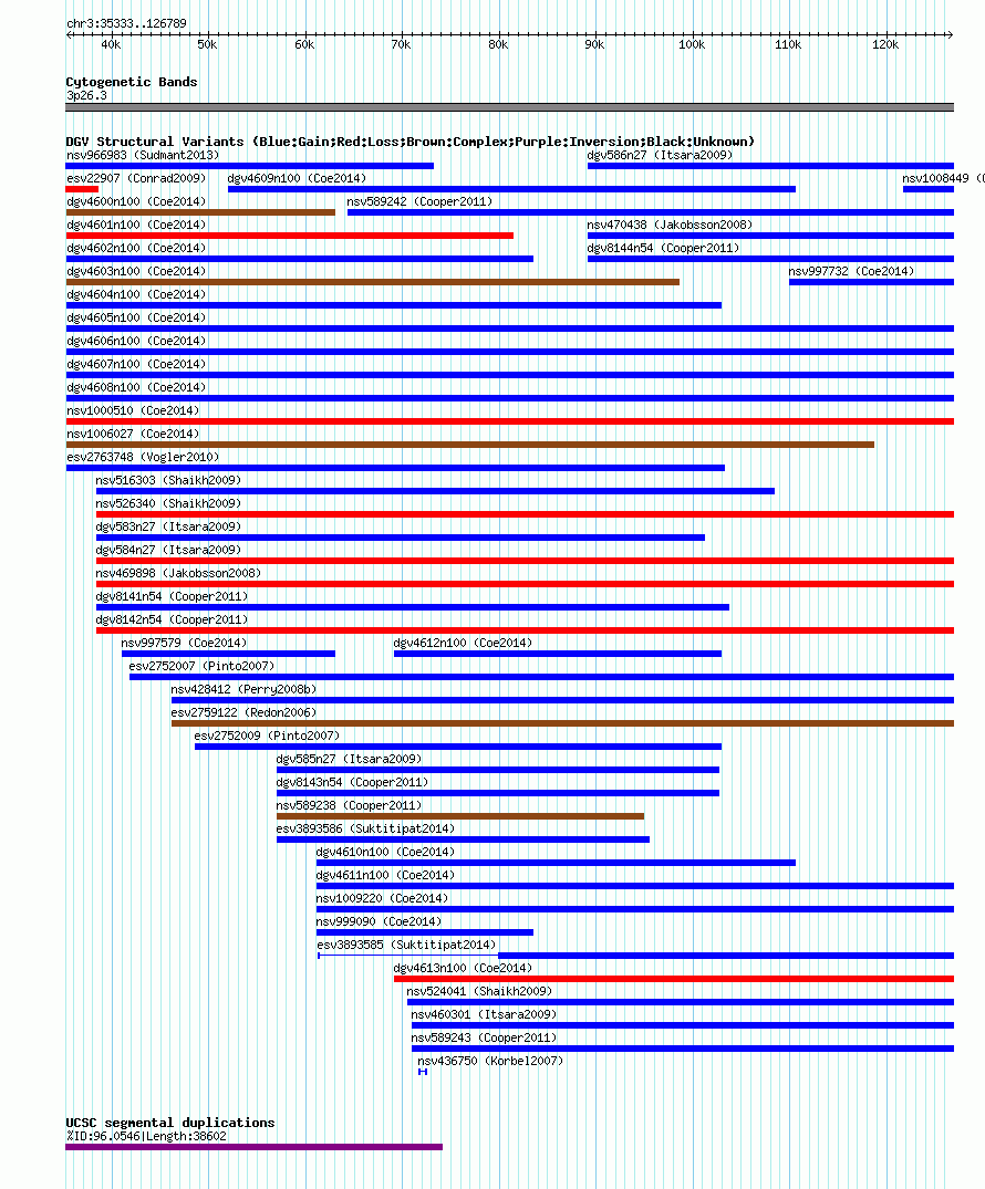 Variant DetailsVariant: nsv1008987| Internal ID | 18751518 | | Landmark | | | Location Information | | | Cytoband | 3p26.3 | | Allele length | | Assembly | Allele length | | hg38 | 91452 | | hg19 | 91457 | | hg18 | 91457 |