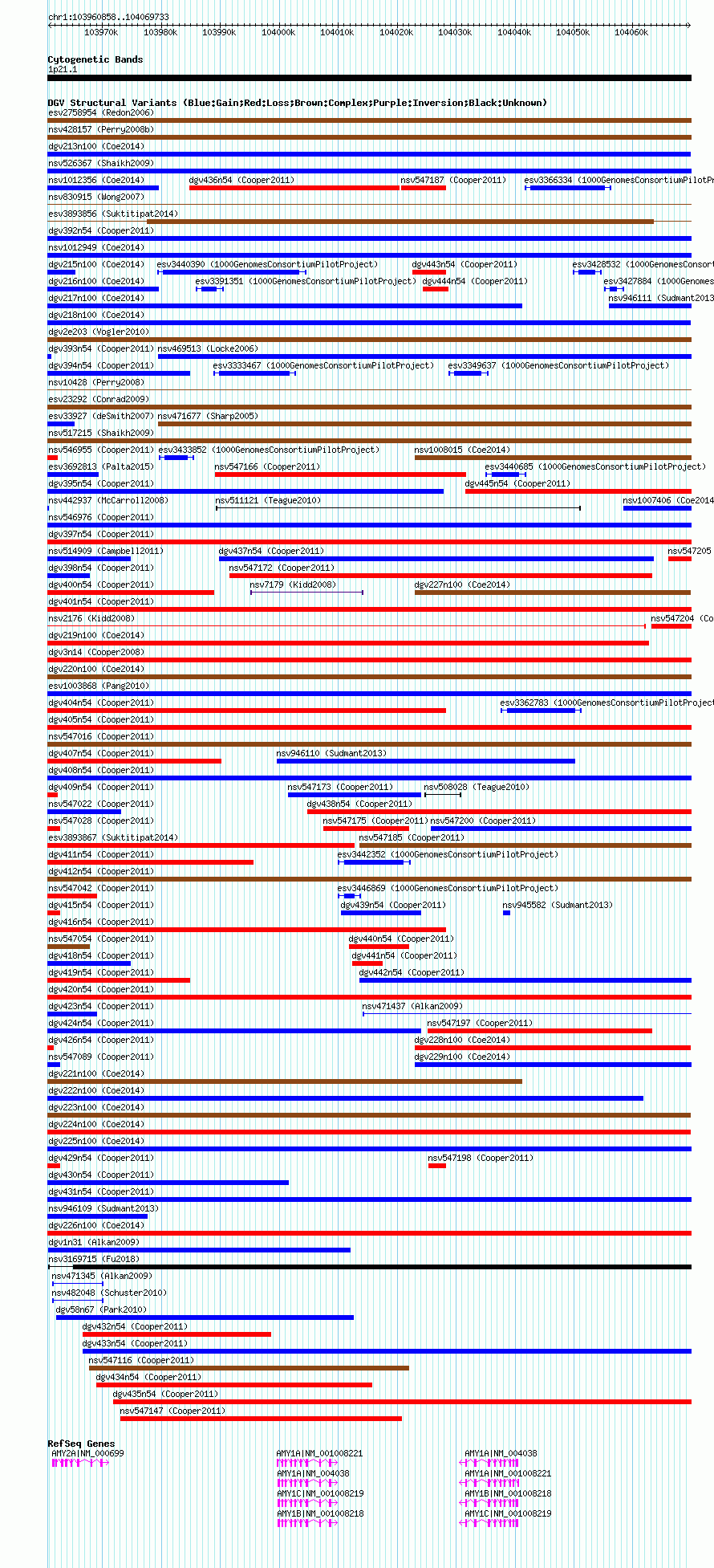 Variant DetailsVariant: nsv1009155 | Internal ID | 19098373 | | Landmark | | | Location Information | | | Cytoband | 1p21.1 | | Allele length | | Assembly | Allele length | | hg38 | 108876 | | hg19 | 108876 | | hg18 | 108876 |