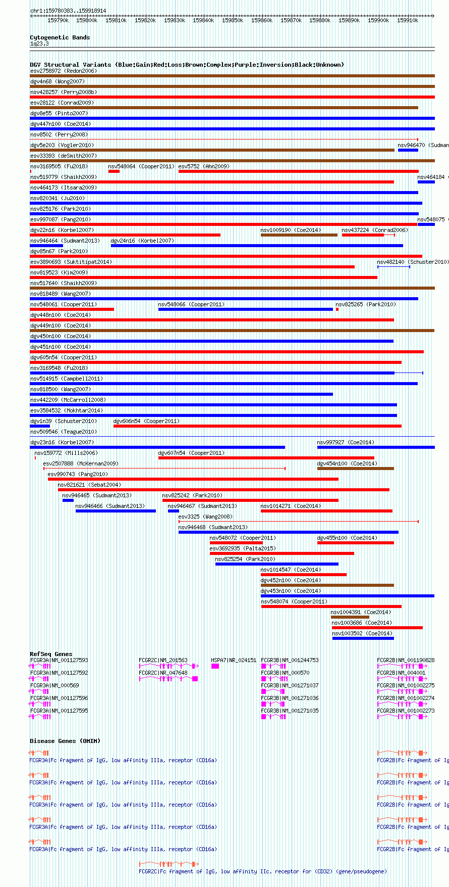 | | Variant Type | CNV gain+loss | | Copy Number | | | Allele State | | | Allele Origin | | | Probe Count | | | Validation Flag | | | Merged Status | M | | Merged Variants | dgv449n100 | | Supporting Variants | nssv3486110, nssv3488258, nssv3493383, nssv3500009, nssv3490667 | | Samples | | | Known Genes | FCGR2B, FCGR2C, FCGR3A, FCGR3B, HSPA7 | | Method | SNP array | | Analysis | Affymetrix SNP array copy number analysis | | Platform | Affymetrix SNP Array 6.0 | | Comments | | | Reference | Coe_et_al_2014 | | Pubmed ID | 25217958 | | Accession Number(s) | nsv1009245