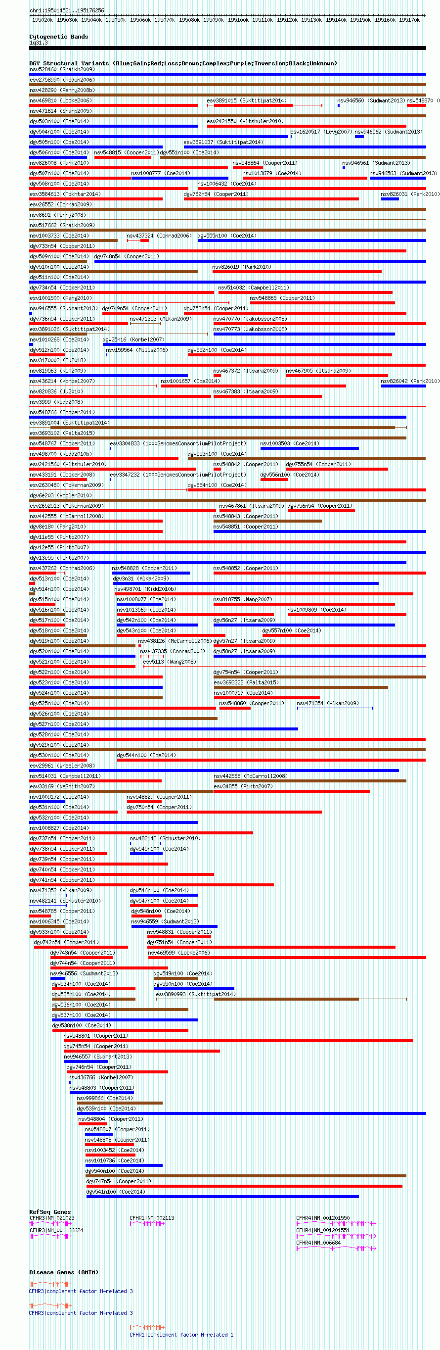 | | Variant Type | CNV loss | | Copy Number | | | Allele State | | | Allele Origin | | | Probe Count | | | Validation Flag | | | Merged Status | M | | Merged Variants | dgv528n100 | | Supporting Variants | nssv3489667 | | Samples | | | Known Genes | CFHR1, CFHR3, CFHR4 | | Method | SNP array | | Analysis | Affymetrix SNP array copy number analysis | | Platform | Affymetrix SNP Array 6.0 | | Comments | | | Reference | Coe_et_al_2014 | | Pubmed ID | 25217958 | | Accession Number(s) | nsv1009949