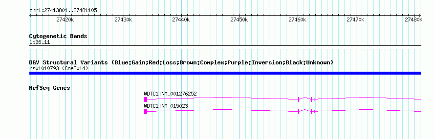 | | Variant Type | CNV gain | | Copy Number | | | Allele State | | | Allele Origin | | | Probe Count | | | Validation Flag | | | Merged Status | M | | Merged Variants | | | Supporting Variants | nssv3477431, nssv3475703 | | Samples | | | Known Genes | WDTC1 | | Method | SNP array | | Analysis | Affymetrix SNP array copy number analysis | | Platform | Affymetrix SNP Array 6.0 | | Comments | | | Reference | Coe_et_al_2014 | | Pubmed ID | 25217958 | | Accession Number(s) | nsv1010793