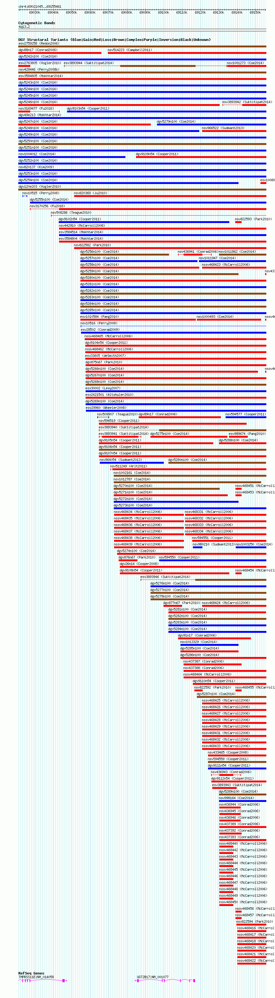 Variant DetailsVariant: nsv1010965| Internal ID | 19100182 | | Landmark | | | Location Information | | | Cytoband | 4q13.2 | | Allele length | | Assembly | Allele length | | hg38 | 134417 | | hg19 | 134417 | | hg18 | 134417 |
