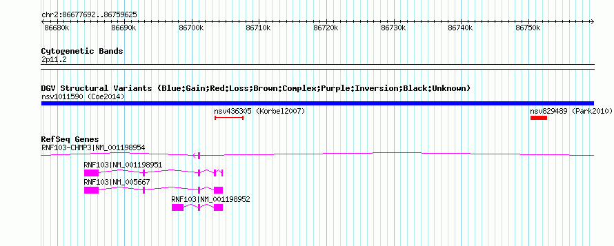 Variant DetailsVariant: nsv1011590| Internal ID | 19100807 | | Landmark | | | Location Information | | | Cytoband | 2p11.2 | | Allele length | | Assembly | Allele length | | hg38 | 81934 | | hg19 | 81934 | | hg18 | 81934 |
