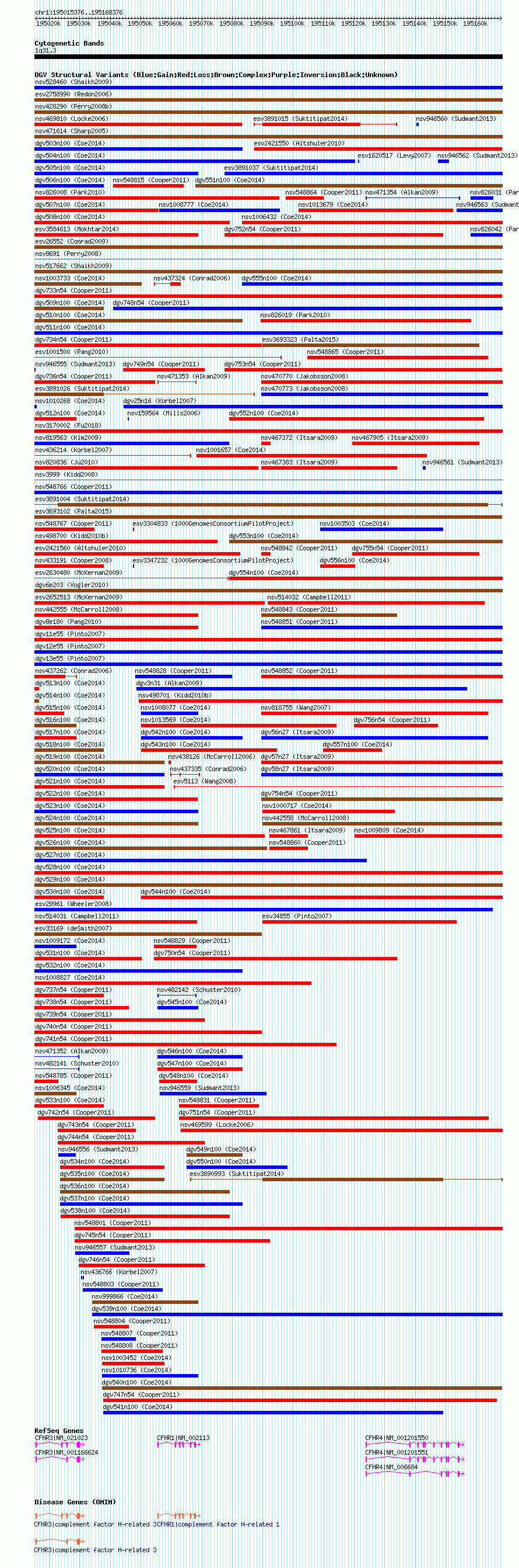 Variant DetailsVariant: nsv1011841| Internal ID | 19101059 | | Landmark | | | Location Information | | | Cytoband | 1q31.3 | | Allele length | | Assembly | Allele length | | hg38 | 153001 | | hg19 | 153001 | | hg18 | 153001 |