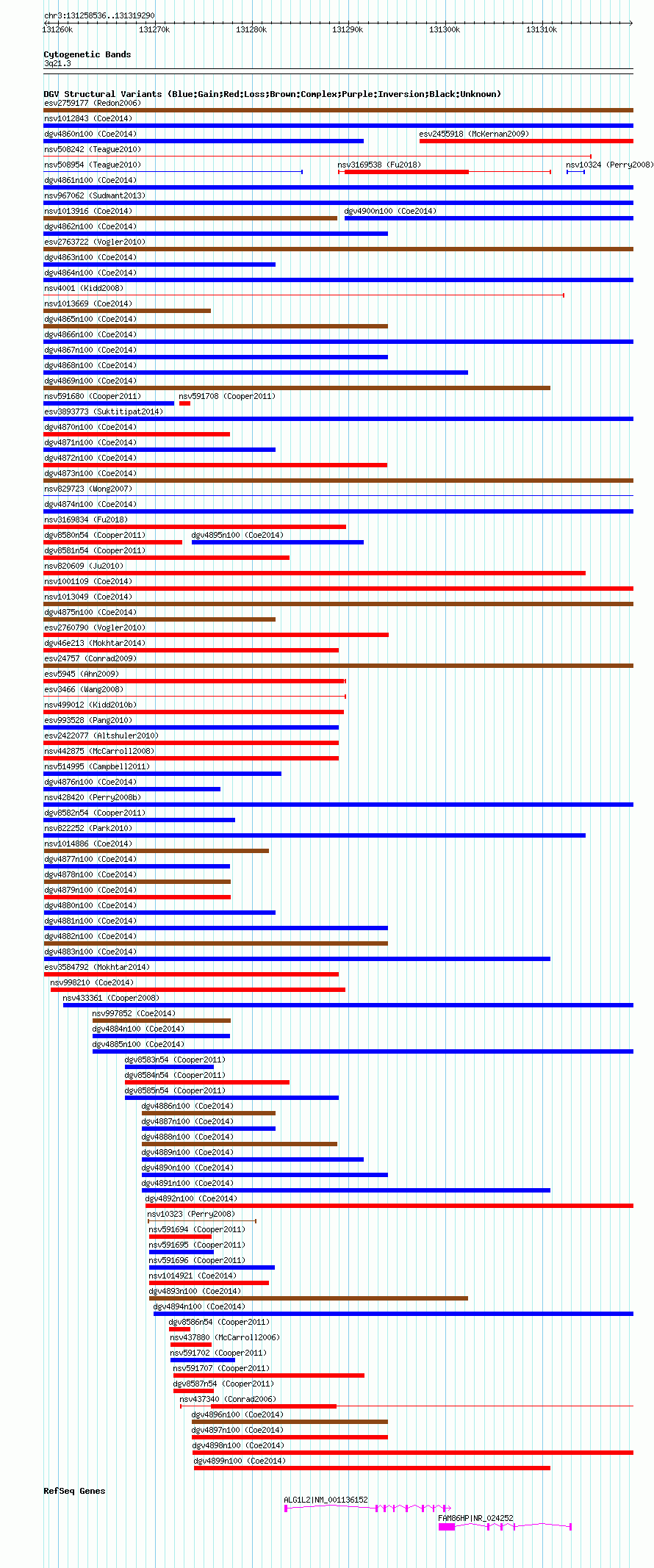 Variant DetailsVariant: nsv1012622| Internal ID | 19101839 | | Landmark | | | Location Information | | | Cytoband | 3q21.3 | | Allele length | | Assembly | Allele length | | hg38 | 60755 | | hg19 | 60755 | | hg18 | 60755 |