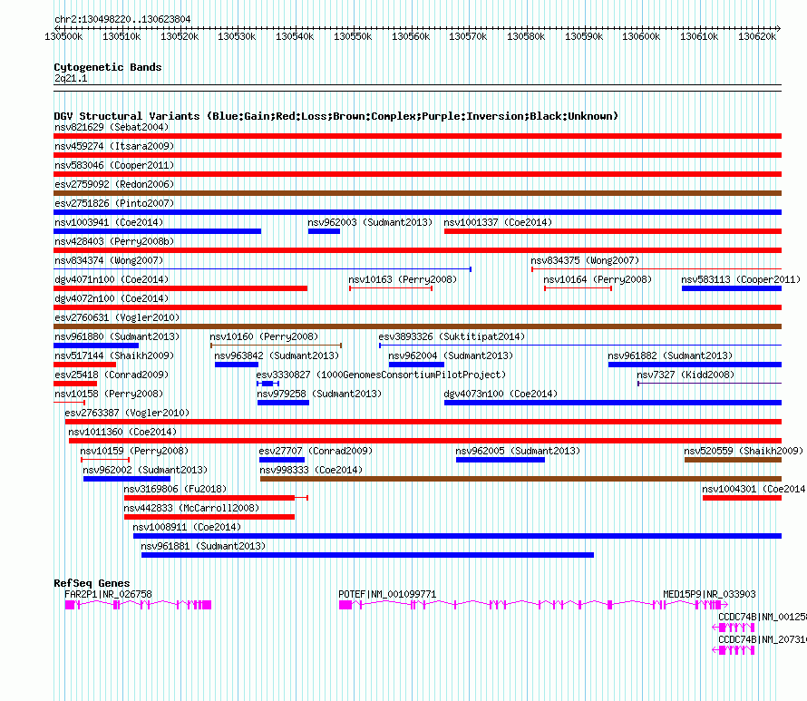 | Known Genes | CCDC74B, FAR2P1, MED15P9, POTEF |