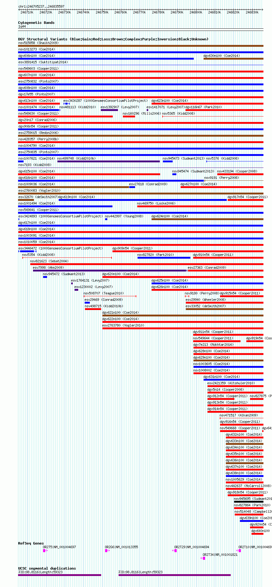 Variant DetailsVariant: nsv1012700| Internal ID | 18755232 | | Landmark | | | Location Information | | | Cytoband | 1q44 | | Allele length | | Assembly | Allele length | | hg38 | 130361 | | hg19 | 130361 | | hg18 | 130361 |