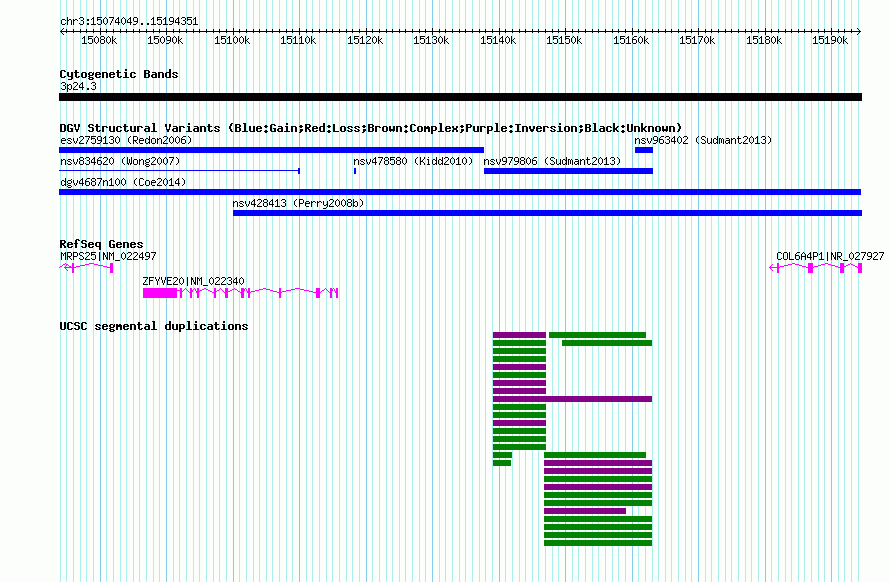 | Known Genes | COL6A4P1, MRPS25, ZFYVE20 |