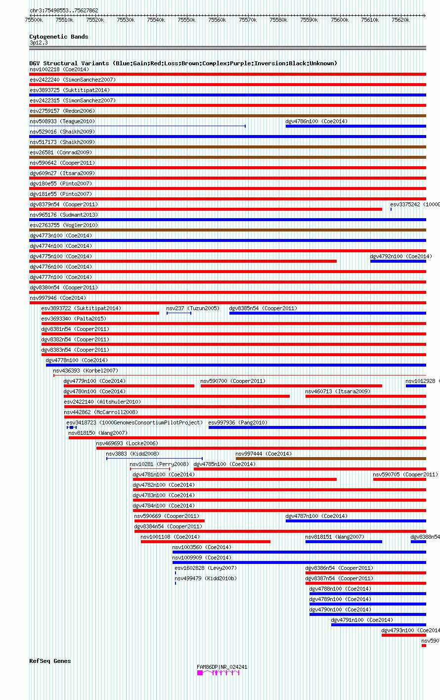 Variant DetailsVariant: nsv1012937| Internal ID | 19102154 | | Landmark | | | Location Information | | | Cytoband | 3p12.3 | | Allele length | | Assembly | Allele length | | hg38 | 129310 | | hg19 | 129310 | | hg18 | 129310 |