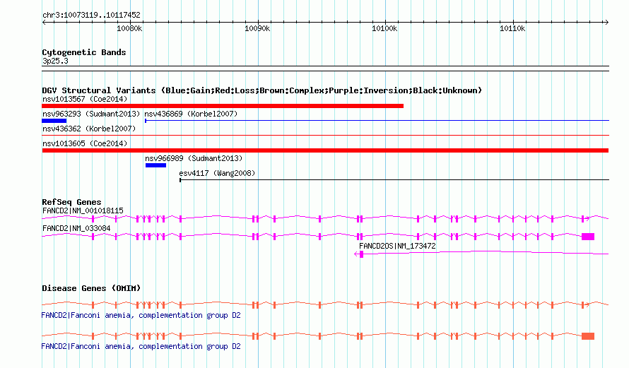 | | Variant Type | CNV loss | | Copy Number | | | Allele State | | | Allele Origin | | | Probe Count | | | Validation Flag | | | Merged Status | M | | Merged Variants | | | Supporting Variants | nssv3591931 | | Samples | | | Known Genes | FANCD2, FANCD2OS | | Method | SNP array | | Analysis | Affymetrix SNP array copy number analysis | | Platform | Affymetrix SNP Array 6.0 | | Comments | | | Reference | Coe_et_al_2014 | | Pubmed ID | 25217958 | | Accession Number(s) | nsv1013605
