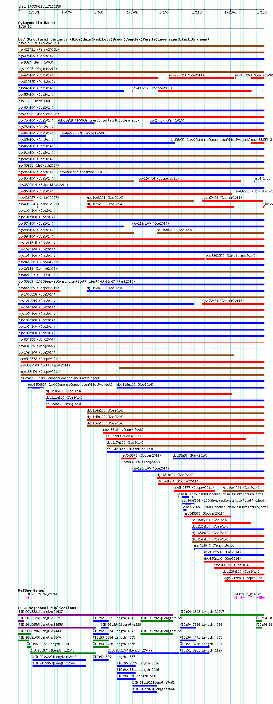 Variant DetailsVariant: nsv1013701| Internal ID | 18756233 | | Landmark | | | Location Information | | | Cytoband | 1p36.13 | | Allele length | | Assembly | Allele length | | hg38 | 75247 | | hg19 | 75247 | | hg18 | 75247 |
